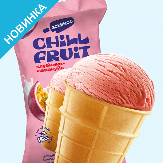 Десерт шербет взбитый замороженный с клубникой и маракуйей в вафельном стаканчике, 2,9%, 75 г.