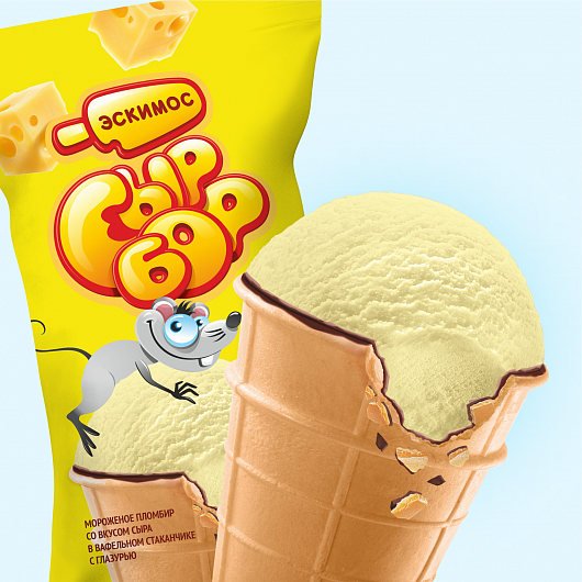 Мороженое пломбир «Сыр-бор» со вкусом сыра в вафельном стаканчике с глазурью, 12%, 80 г.