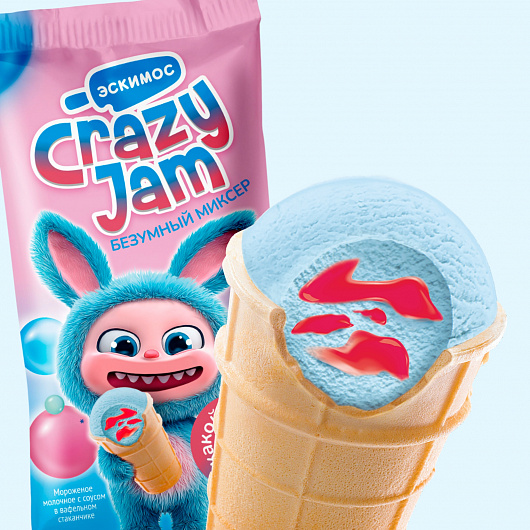 Мороженое молочное с соусом в вафельном стаканчике «CRAZY JAM. БЕЗУМНЫЙ МИКСЕР, 6% 75 г.