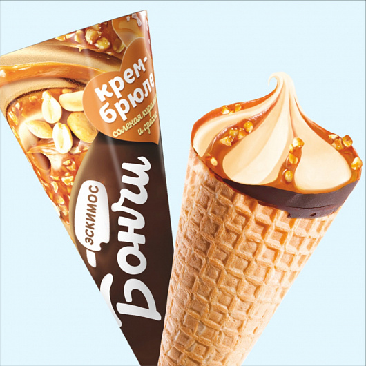 Мороженое сливочное крем-брюле с начинкой «со вкусом солёной карамели» в вафельном сахарном глазированном рожке, 10%, 70 г.