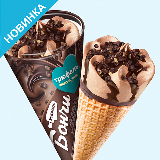 Мороженое пломбир со вкусом сыра с «шоколадным» топпингом в вафельном сахарном рожке «Сыр-Бор», 12%, 75г.