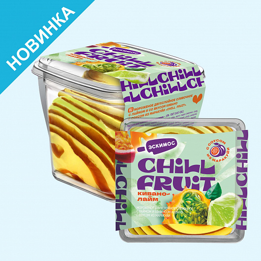 Мороженое двухслойное сливочное с лаймом и со вкусом кивано с соусом из маракуйи «CHILL FRUIT» 10%, 180г