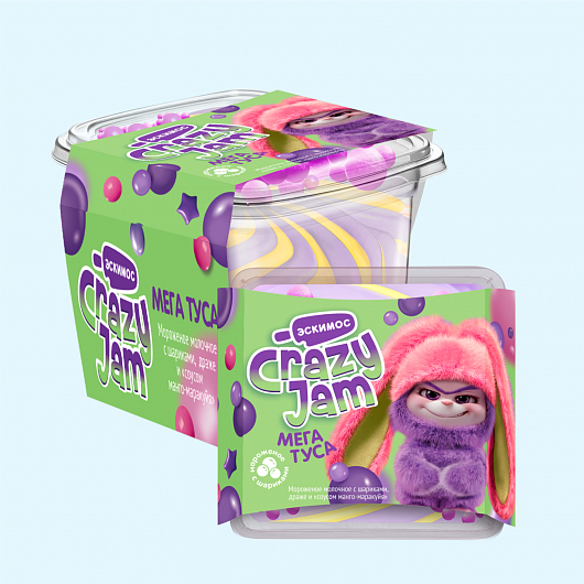Мороженое молочное с шариками, драже и «соусом манго-маракуйя», «CRAZY JAM. МЕГА ТУСА», 6%, 180 г.
