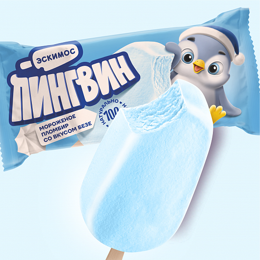 Мороженое пломбир со вкусом безе «Пингвин», 15%, 65г.