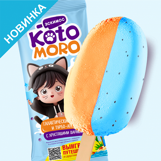 Мороженое двухслойное сливочное с апельсином и со вкусом лимонада с рисовыми шариками 10%, 65г Штрих-код: 4660105726012